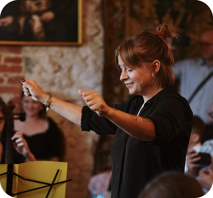 W Fundacji Czułej Sztuki prowadzi orkiestry dla dzieci i dorosłych, zawsze z pasją do wspólnego grania, niezależnie od wieku. Jest mentorką, która pomaga odkrywać radość i moc muzyki, ucząc współpracy